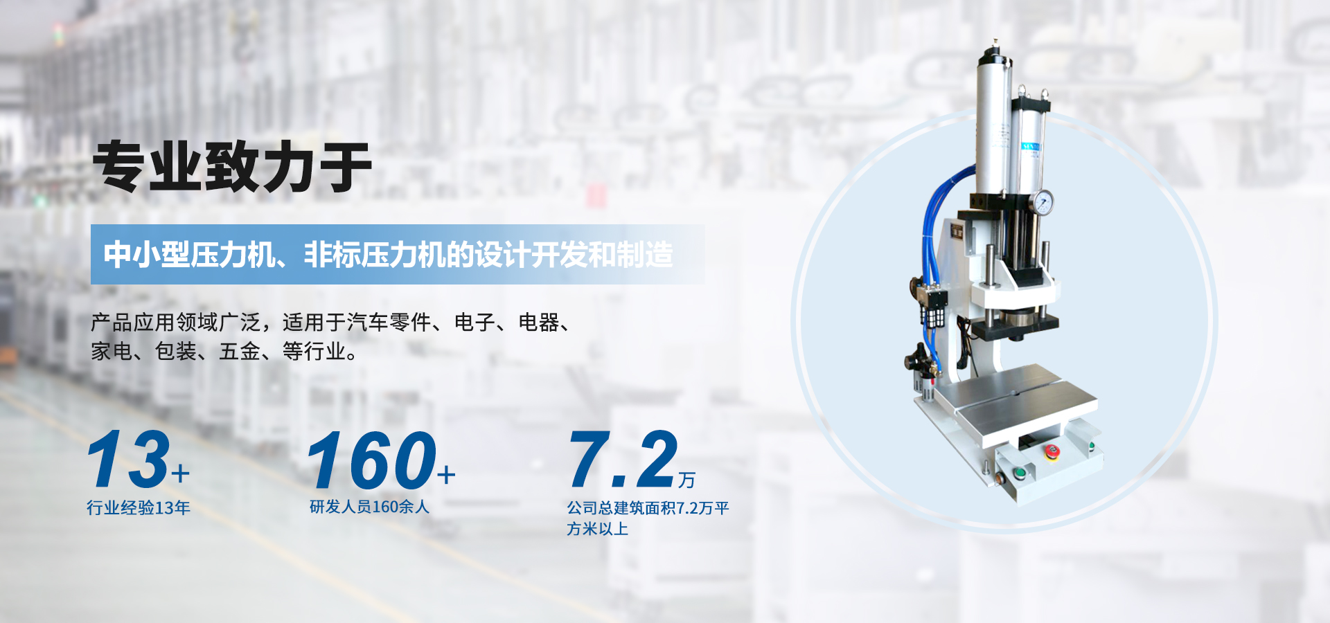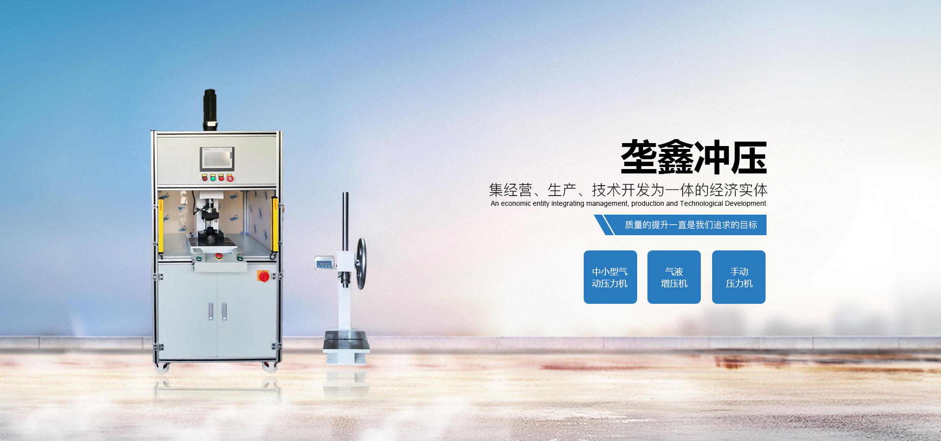 煙臺(tái)壟鑫沖壓設(shè)備有限公司是集經(jīng)營(yíng)、生產(chǎn)、技術(shù)開(kāi)發(fā)為一體的經(jīng)濟(jì)實(shí)體,專(zhuān)業(yè)致力于中小型壓力機(jī)、非標(biāo)壓力機(jī)的設(shè)計(jì)開(kāi)發(fā)和制造。在引進(jìn)德國(guó)、日本等國(guó)家先進(jìn)的鉚壓控制技術(shù)及機(jī)器設(shè)計(jì)理念的基礎(chǔ)上,結(jié)合相關(guān)行業(yè)的實(shí)際需要,開(kāi)發(fā)出各種臺(tái)式、落地式氣動(dòng)壓力機(jī)、手動(dòng)壓力機(jī)、氣液增壓機(jī)、氣液增力缸、旋鉚機(jī)、無(wú)鉚釘鉚接機(jī)等鉚接設(shè)備。產(chǎn)品應(yīng)用領(lǐng)域廣泛,適用于汽車(chē)零件、電子、電器、家電、包裝、五金、等行業(yè)。公司視質(zhì)量為生命,并一貫遵循對(duì)每一臺(tái)產(chǎn)品負(fù)責(zé),對(duì)每一位用戶(hù)負(fù)責(zé),真誠(chéng)為您服務(wù)。 自公司成立以來(lái),秉承“誠(chéng)信,創(chuàng)新,專(zhuān)業(yè)”的經(jīng)營(yíng)理念,以?xún)?yōu)質(zhì)的產(chǎn)品,完善的售后服務(wù),樹(shù)立良好的品牌形象,服務(wù)于廣大新老顧客。我們竭誠(chéng)于各位同仁攜手并進(jìn),共謀發(fā)展。